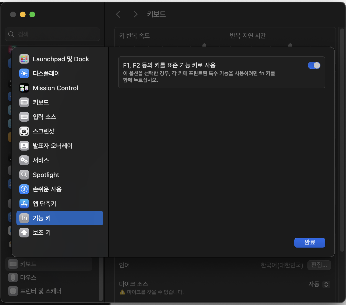 그 이후부터는 기능키를 쓰려면 fn을 누르고 써야한다. 굿.